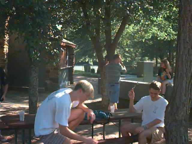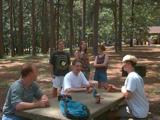 Everyone gathers at a pavillion at Lake Lowndes for the afternoon.