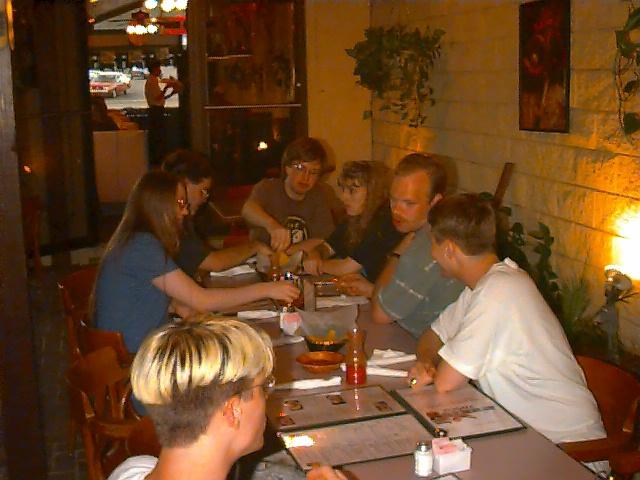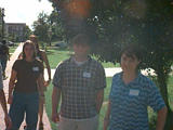 Jim Owens, Melinda Chow, and Michael Buehler (all c/o 1993) munch on