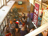 A member of the class of 1993 who wishes to remain anonymous enjoys the exciting gathering in the Hooper lobby.