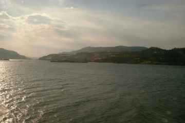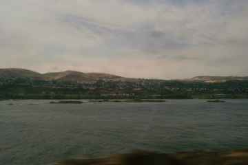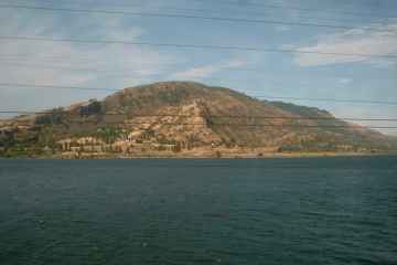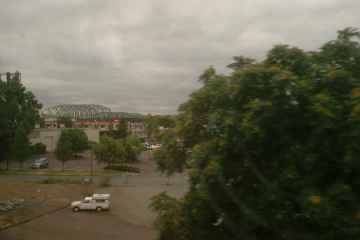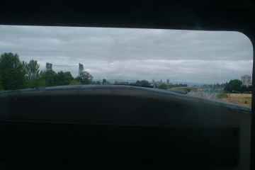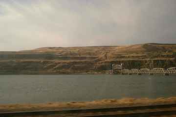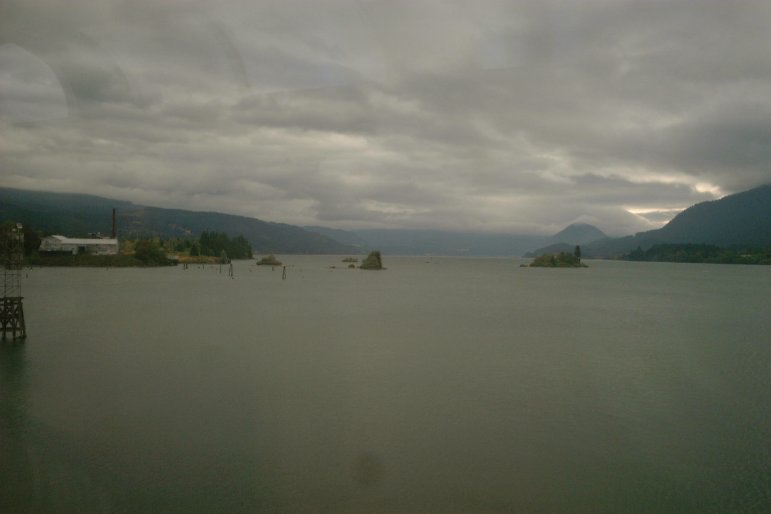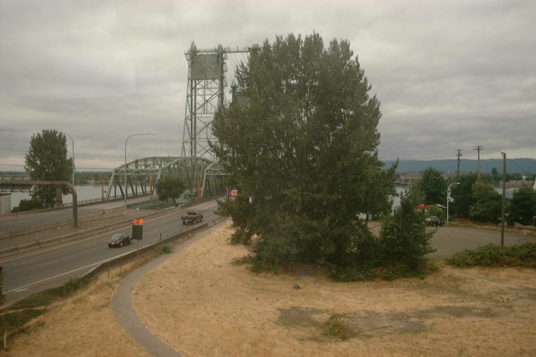 Back in the Portland area, the train goes past the I-5 bridge over the Columbia River.