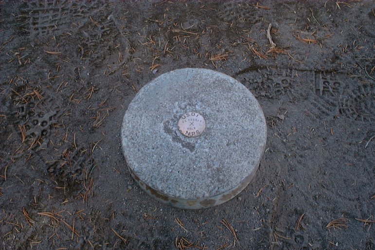 A cool geographical marker on the ground near the overlook.