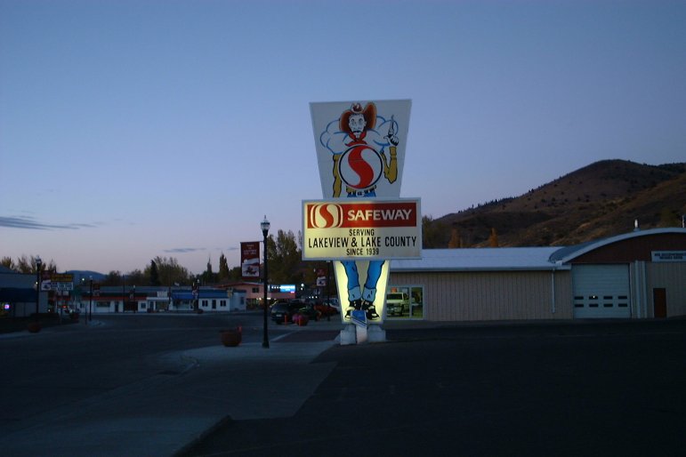 The Lakeview Safeway is guarded, wild-west style.