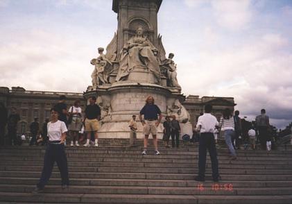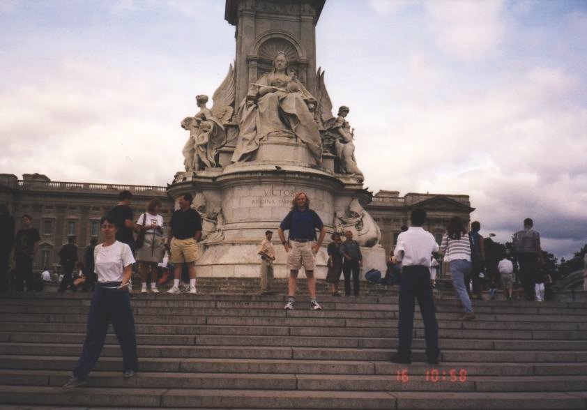 A view of me, standing in front of the statue of Queen Victoria, in front