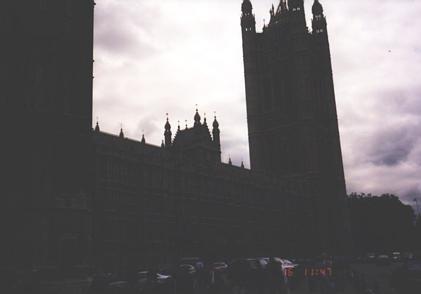 A shadowy outline of the Houses of Parliament.
