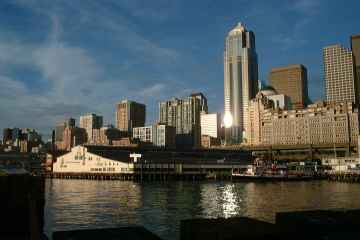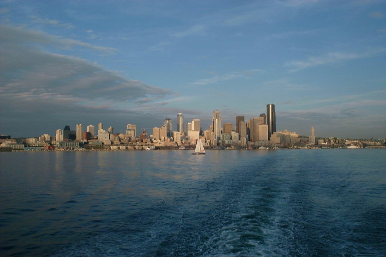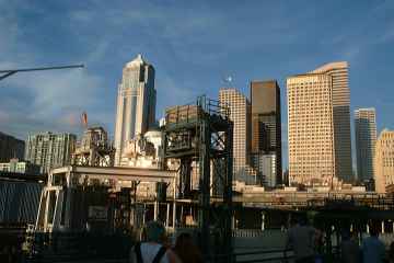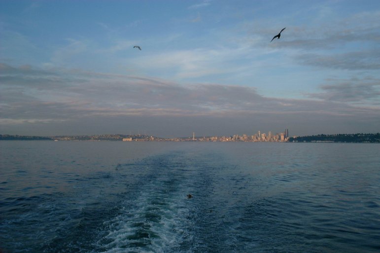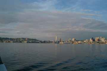 All the pictures on this page are from the Puget Sound ferry while departing Seattle towards Bremerton. Pictures of and from the Space Needle are available on a separate page. As usual, click on an image to see a larger version of the image.
