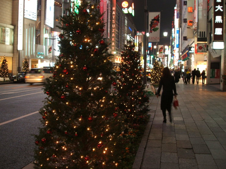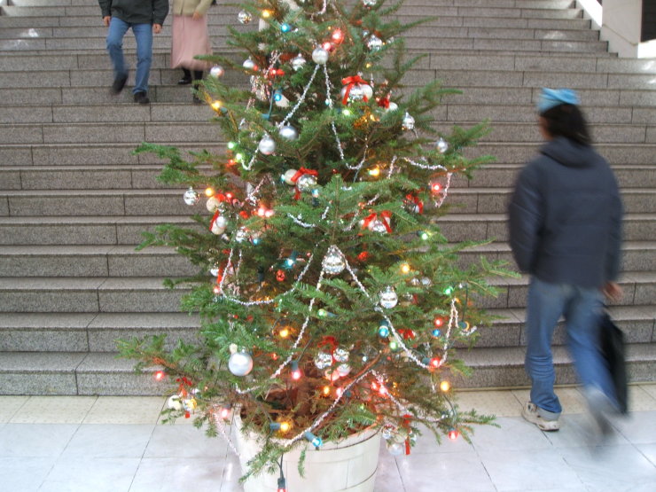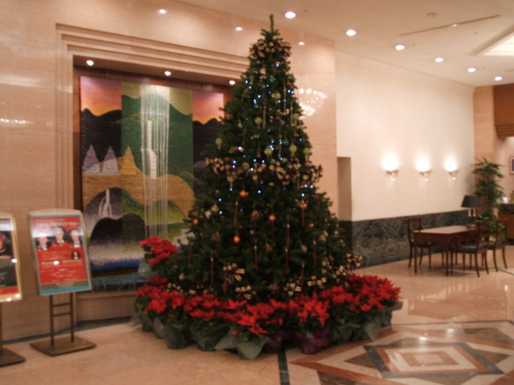A Christmas tree in the lobby of the Keio Plaza Hotel in Hachioji.