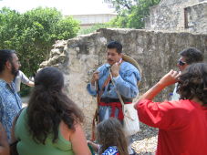 A guide explains the history of the Alamo.