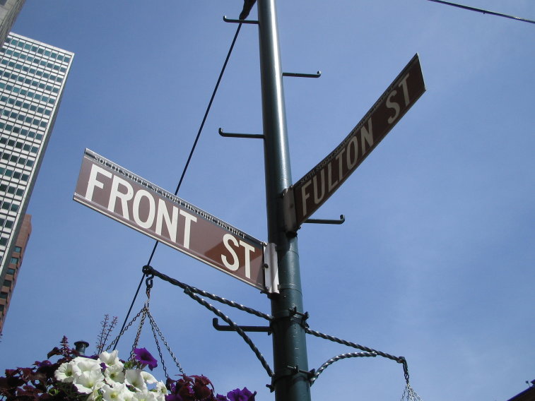 A view of downtown from the South Street Seaport. |