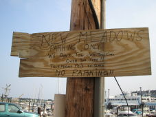 "NEW MEADOWS PARKING ONLY. We don't tow, we toss cars over the side!!"
