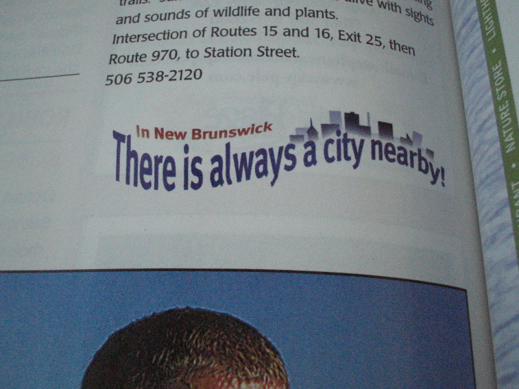 "In New Brunswick, there is always a city nearby!" Hooray! |