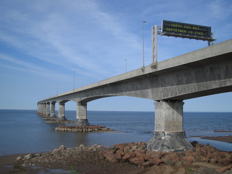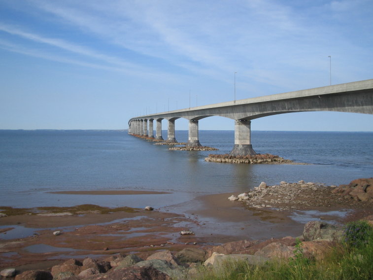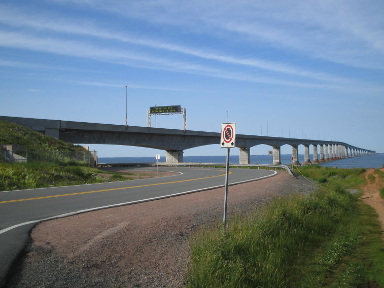 The really long Confederation Bridge to the Canadian province of Prince Edward Island (PEI). |