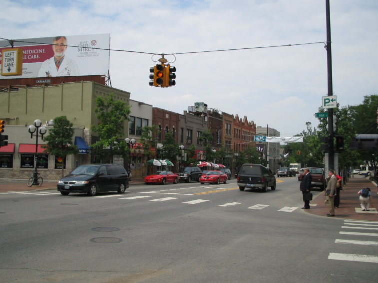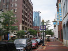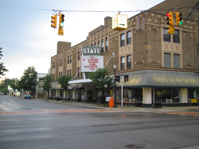 A cute downtown road in Kalamazoo, Michigan.
